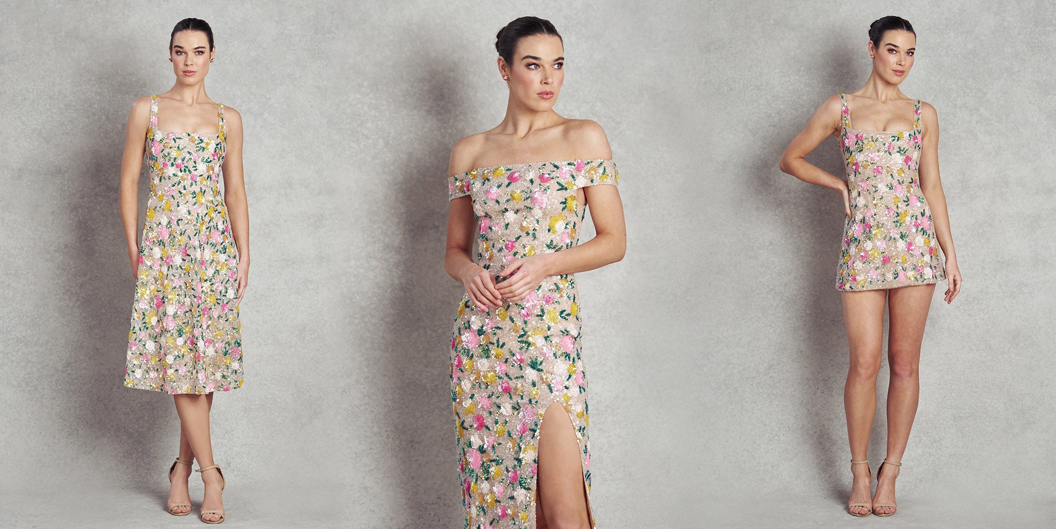 Chasing Sunset Gown - Nude with Floral Sequins