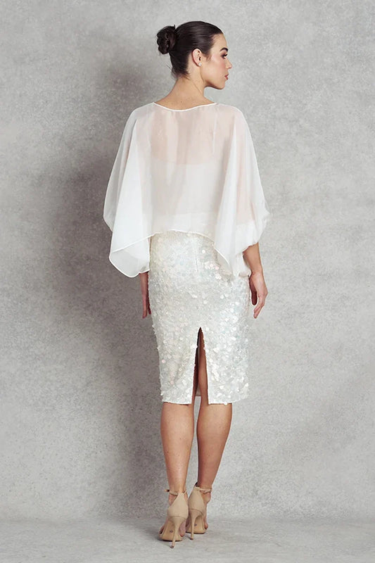 Take my Breath Away Cocktail Pencil Skirt - Iridescent White Sequins